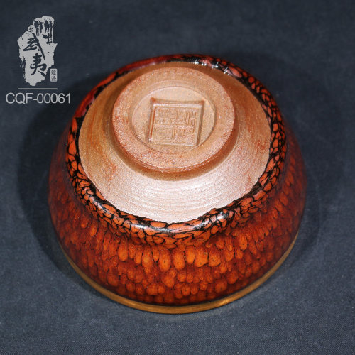 建盏陈其富,金扣柿红鹧鸪茶盏